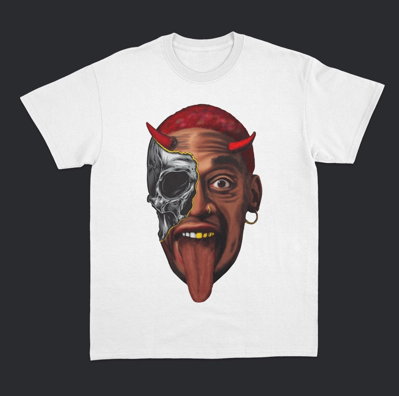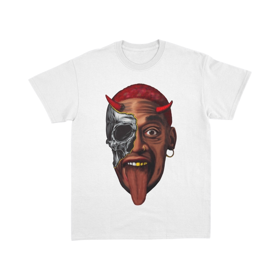 Dennis Rodman Devil Hair White T-Shirt. T-Shirt Has an Oversized Fit.